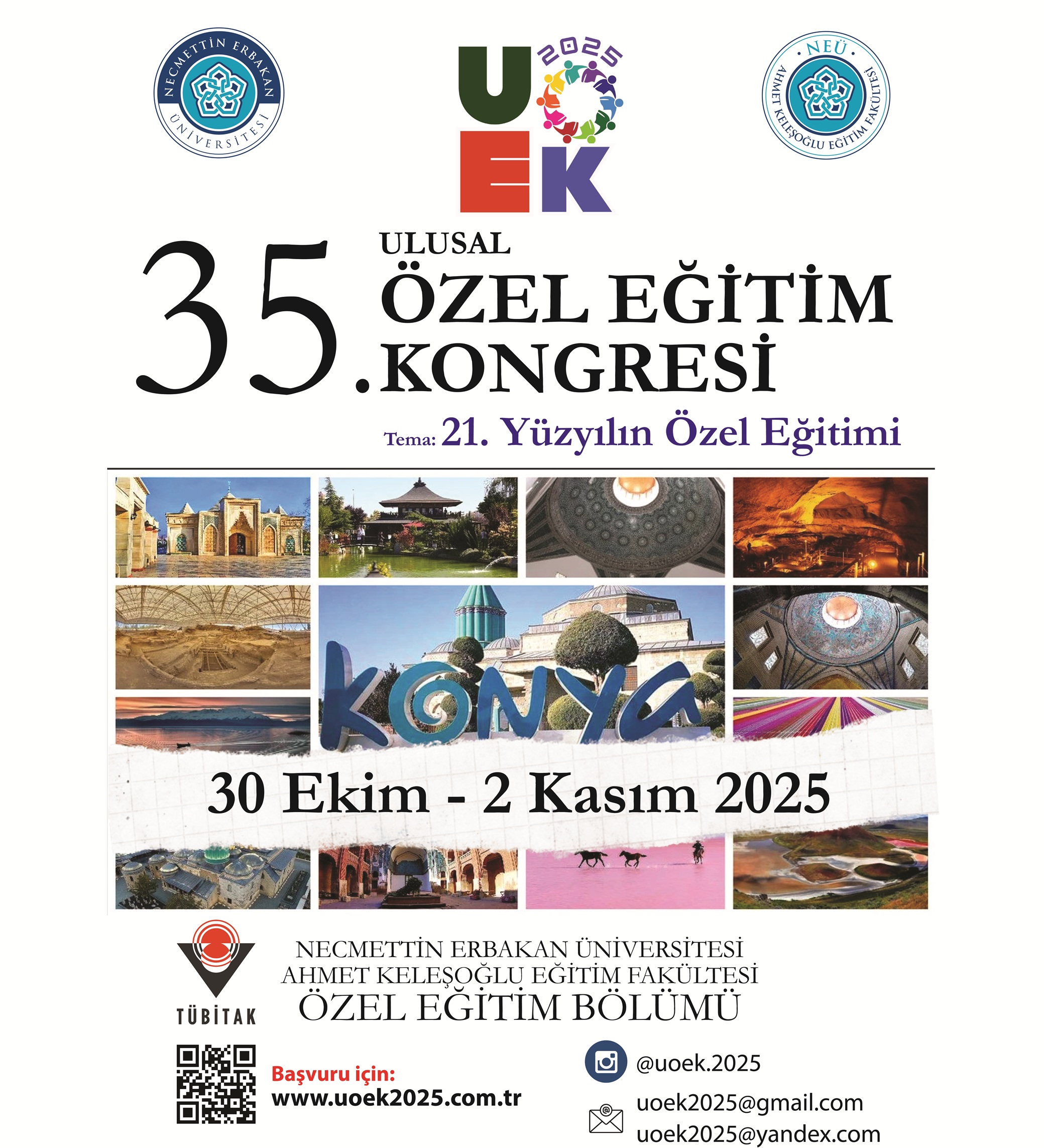 Started in 1991 under the name of ‘Special Education Days’ in memory of Assoc. Prof. Dr. Mitat Enç, the National Special Education Congress, which has developed over the years and has become an important tradition, meets you for the 35th time this year. The 35th National Special Education Congress will be held in Konya, hosted by Necmettin Erbakan University Department of Special Education between 30 October - 2 November 2025. We are honoured to invite you to this meaningful event.